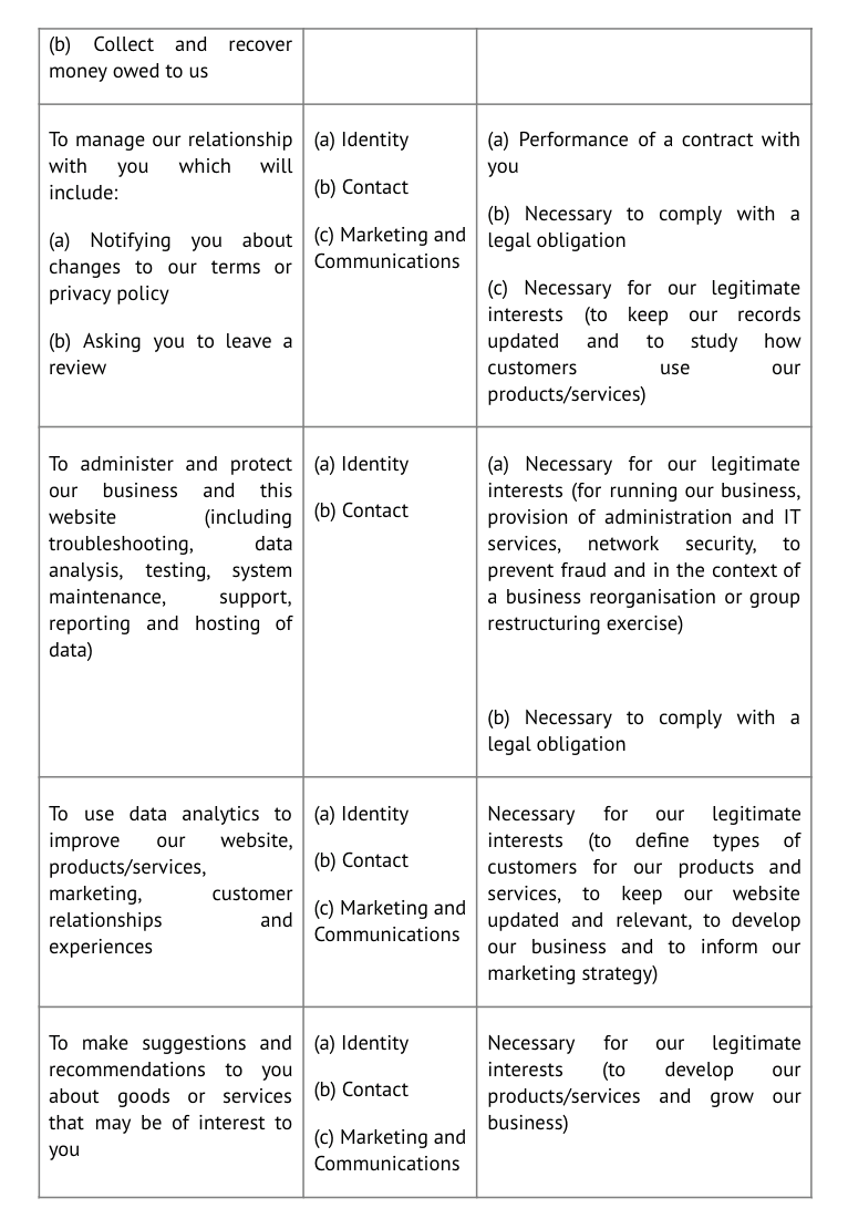 We have set out below a description of all the ways we plan to use your personal data, and which of the legal bases we rely on to do so. We have also identified what our legitimate interests are where appropriate.